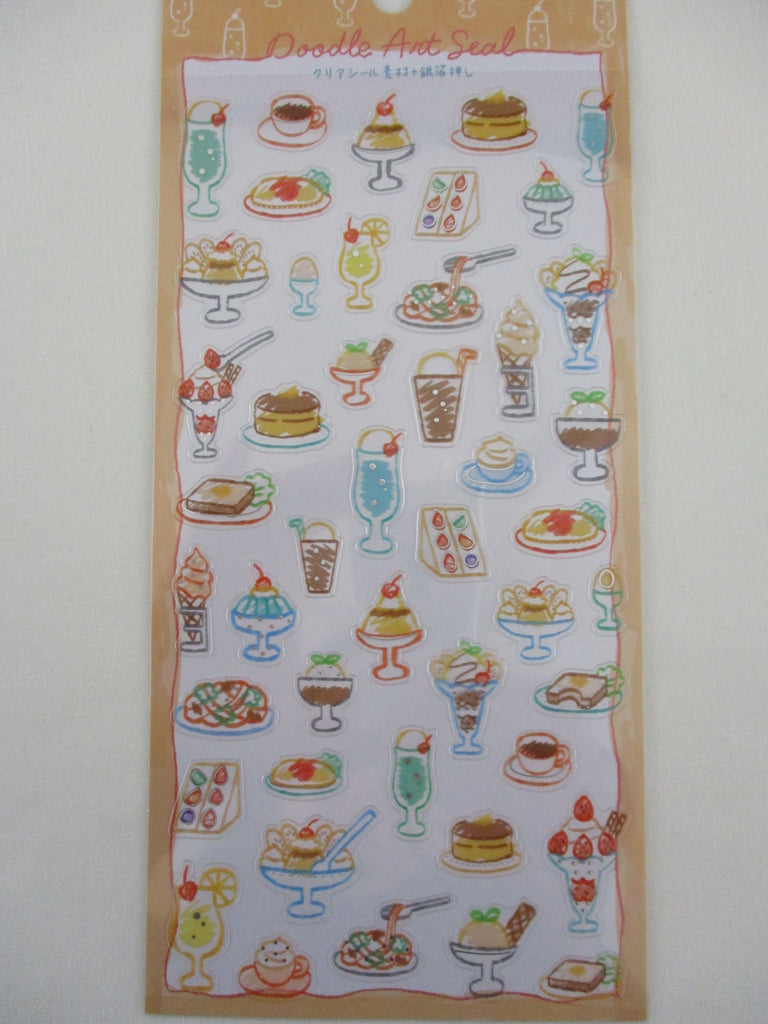 Cute Kawaii Kamio Doodle Seal Series Sticker Sheet - Food Drink Breakfast Pancake Strawberry Dessert - for Journal Planner Craft Agenda Organizer Scrapbook