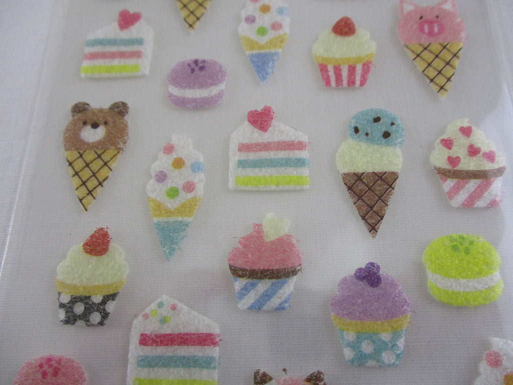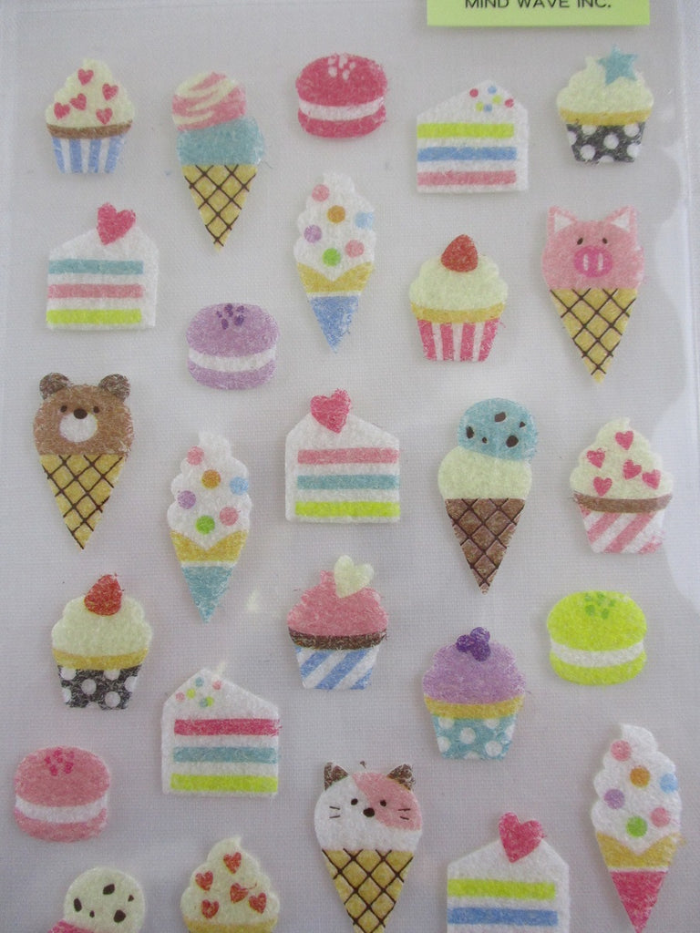 Size of the sheet is about 3.5 x 7 inch. The stickers are made of vivelle paper, but I think it is like a soft sponge. Rare. Super cute. Personal favorite.