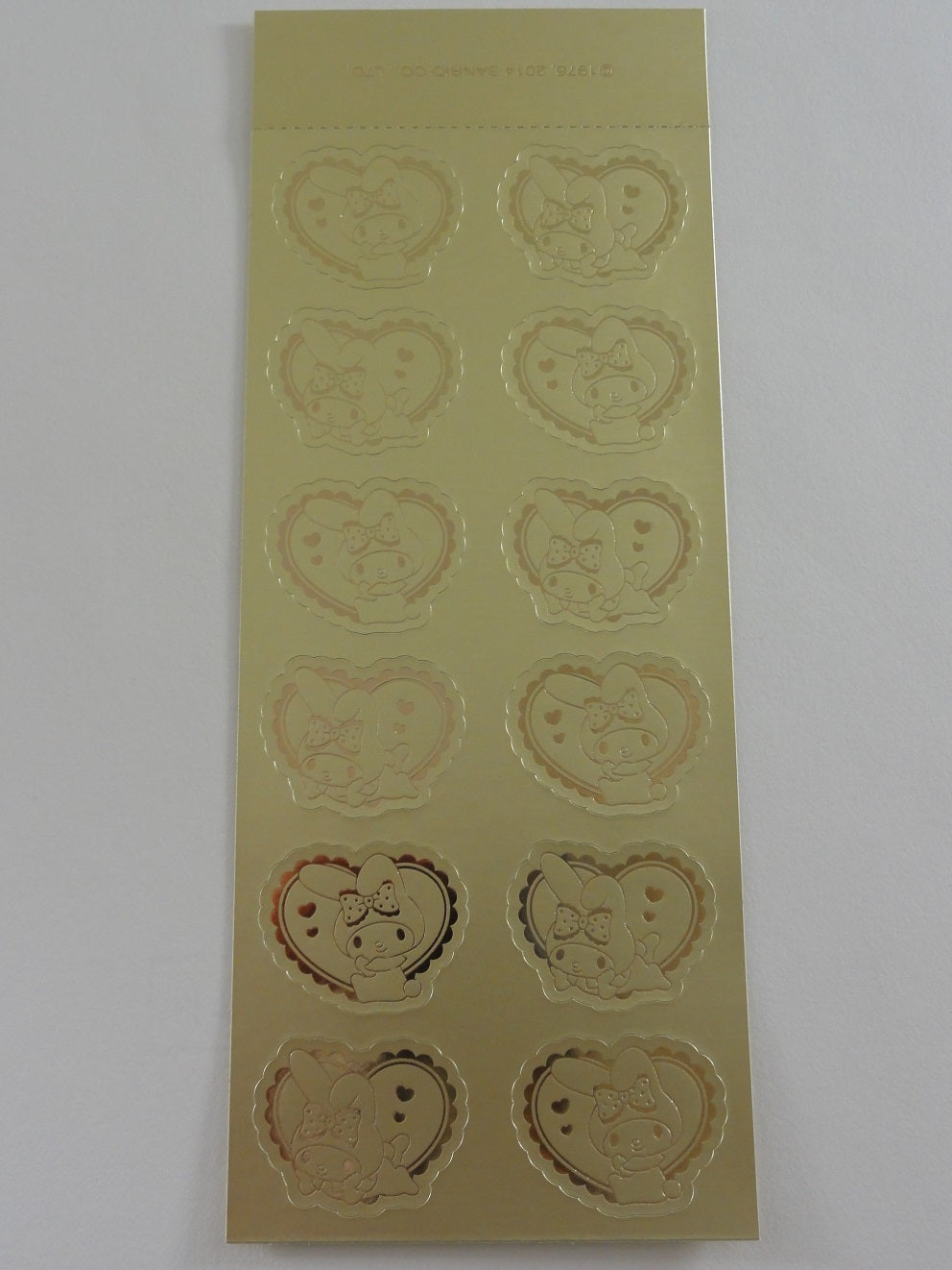 Size of the sheet is about 2.75 x 7 inch. The stickers are made of golden foil paper material.