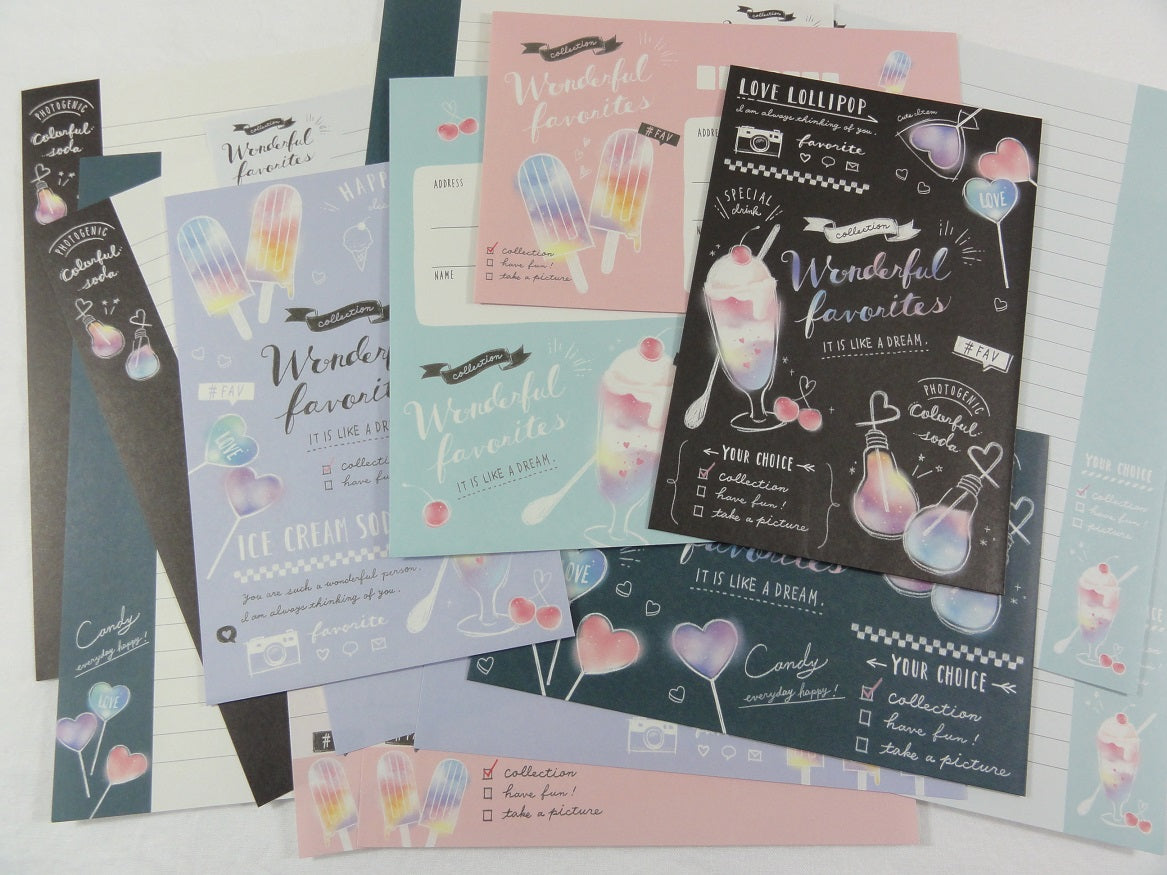Crux Wonderful Favorites Ice Cream Soda Lillipop Drink Letter Sets - Stationery Writing Paper Envelope