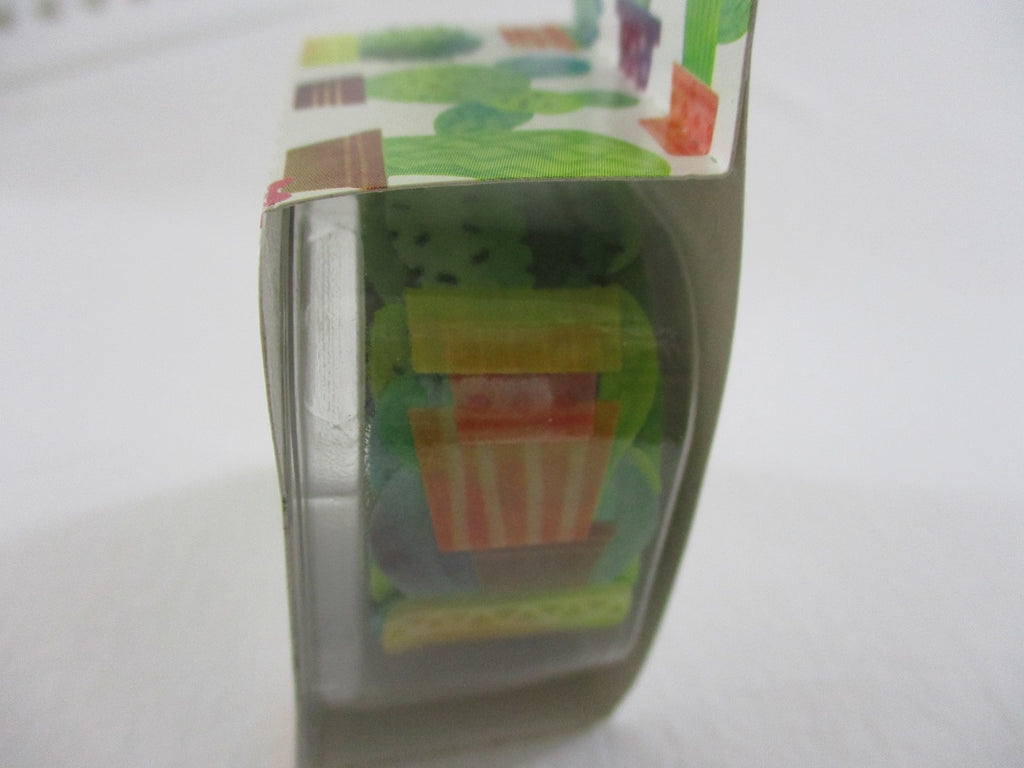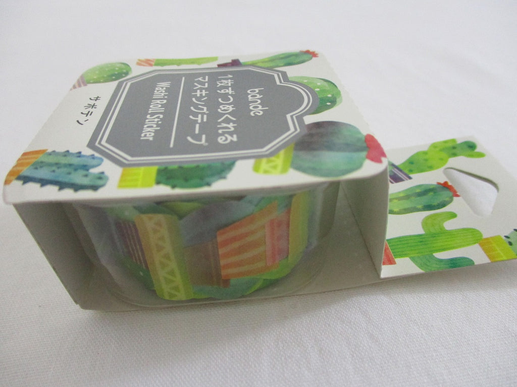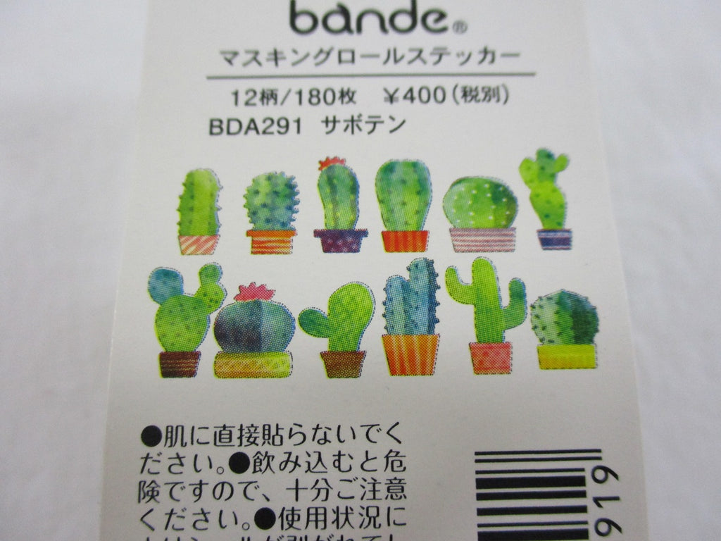 Cute Kawaii Bande Roll of 180 Stickers - Washi Tape Paper - Cactus Green Nature - for Scrapbooking Journal Planner Craft