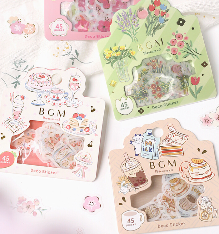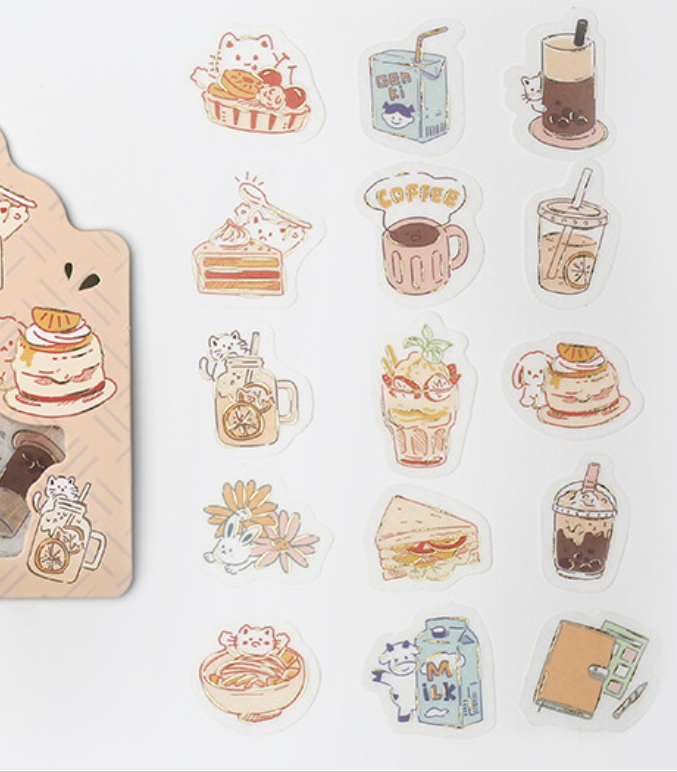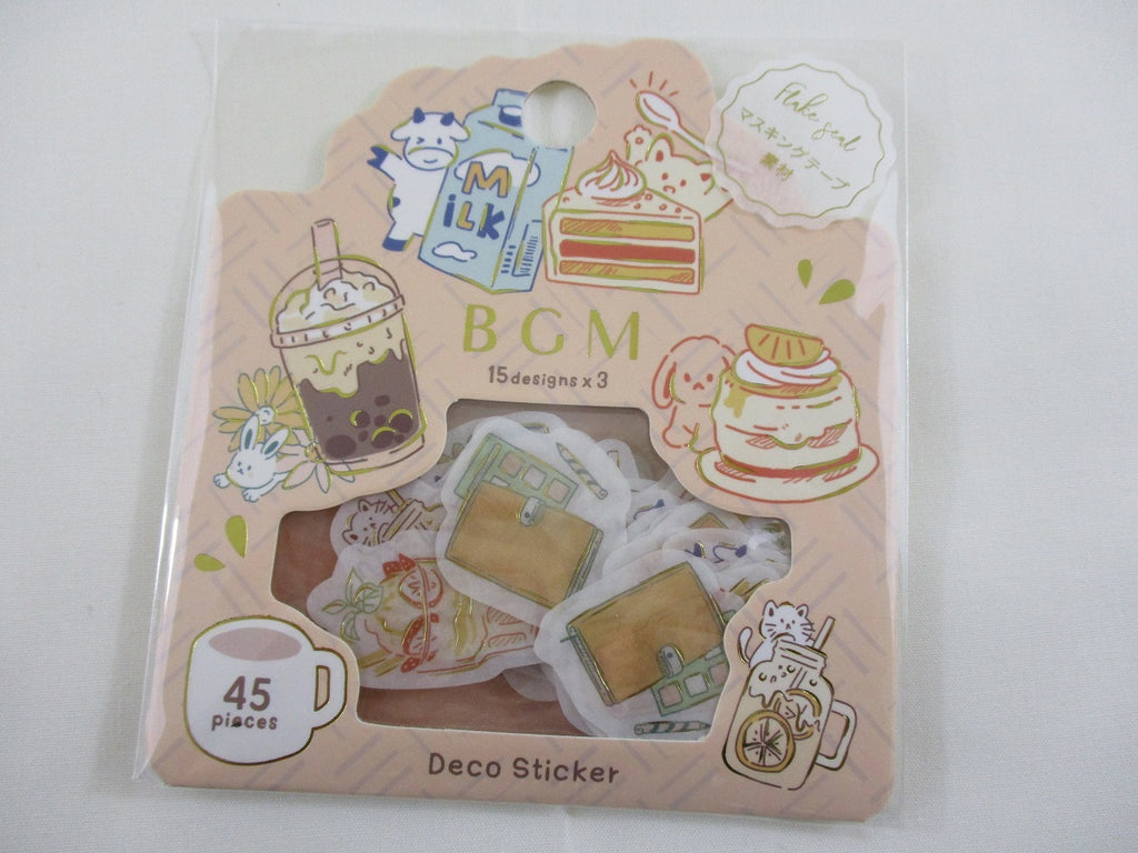 Cute Kawaii BGM Flake Stickers Sack - Animals and Drinks Coffee Milk Juice - for Journal Agenda Planner Scrapbooking Craft