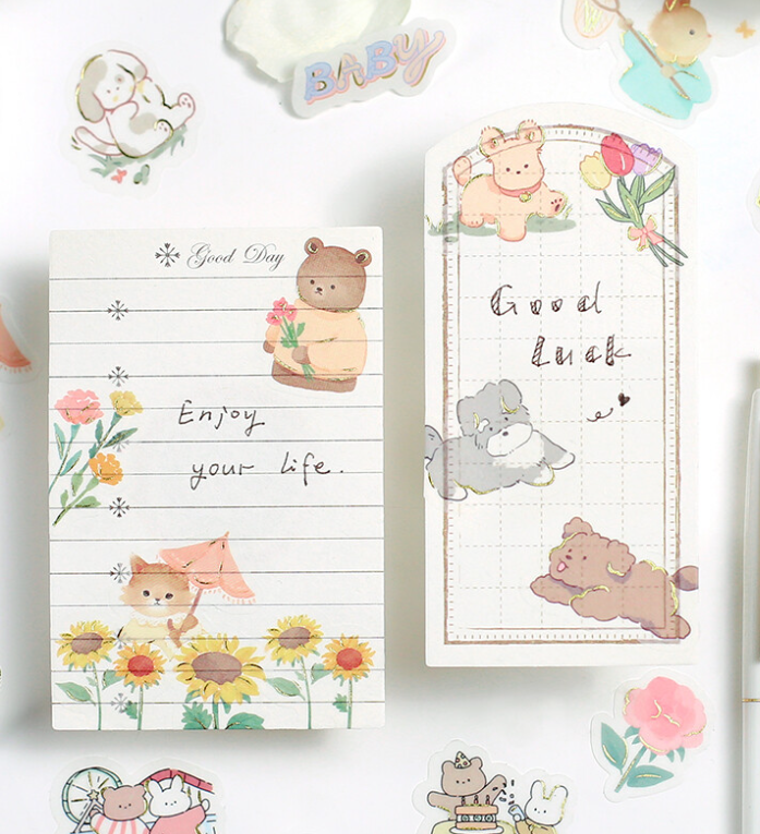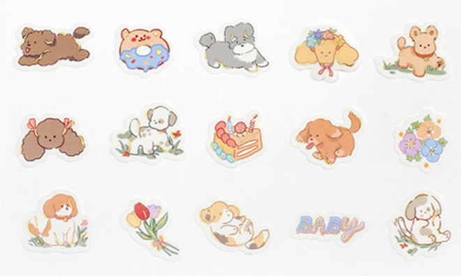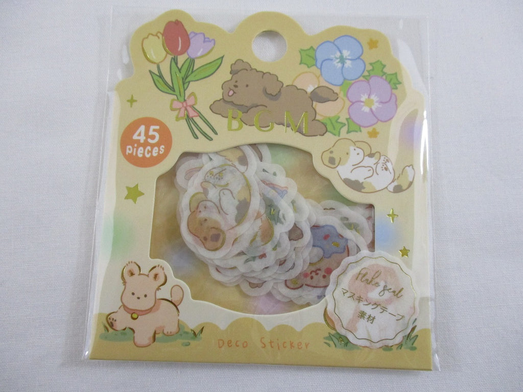Cute Kawaii BGM Flake Stickers Sack - Dog Playful Puppies - for Journal Agenda Planner Scrapbooking Craft