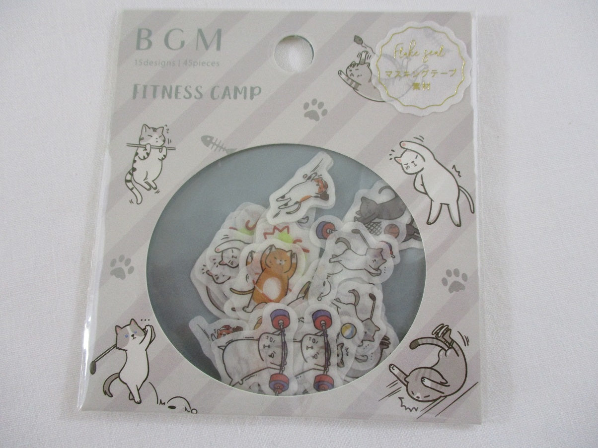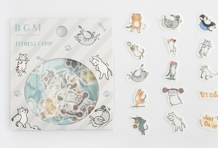 Cute Kawaii BGM Flake Stickers Sack - Fitness Camp Cat - for Journal Agenda Planner Scrapbooking Craft