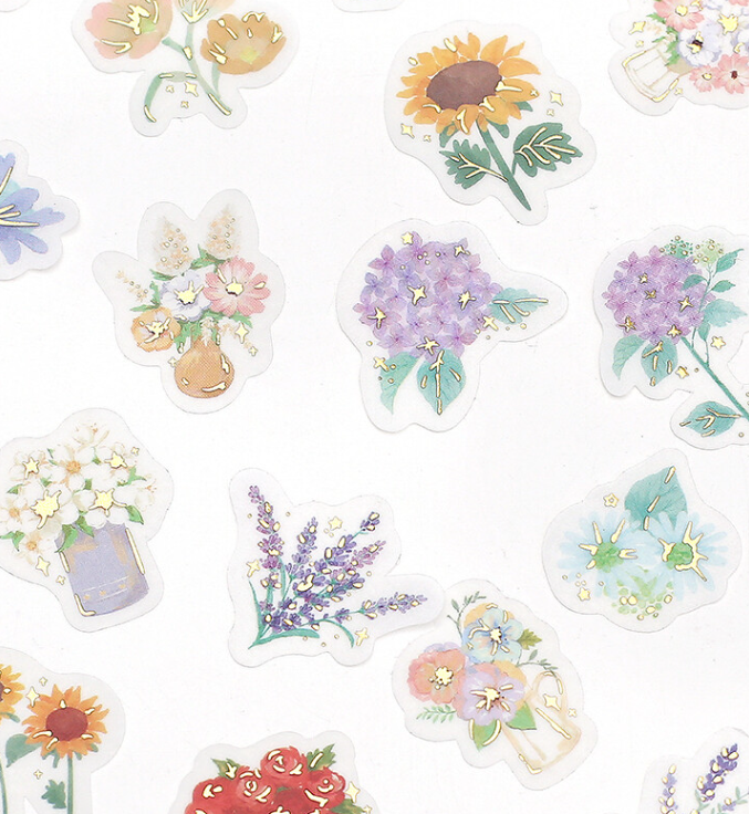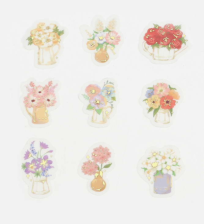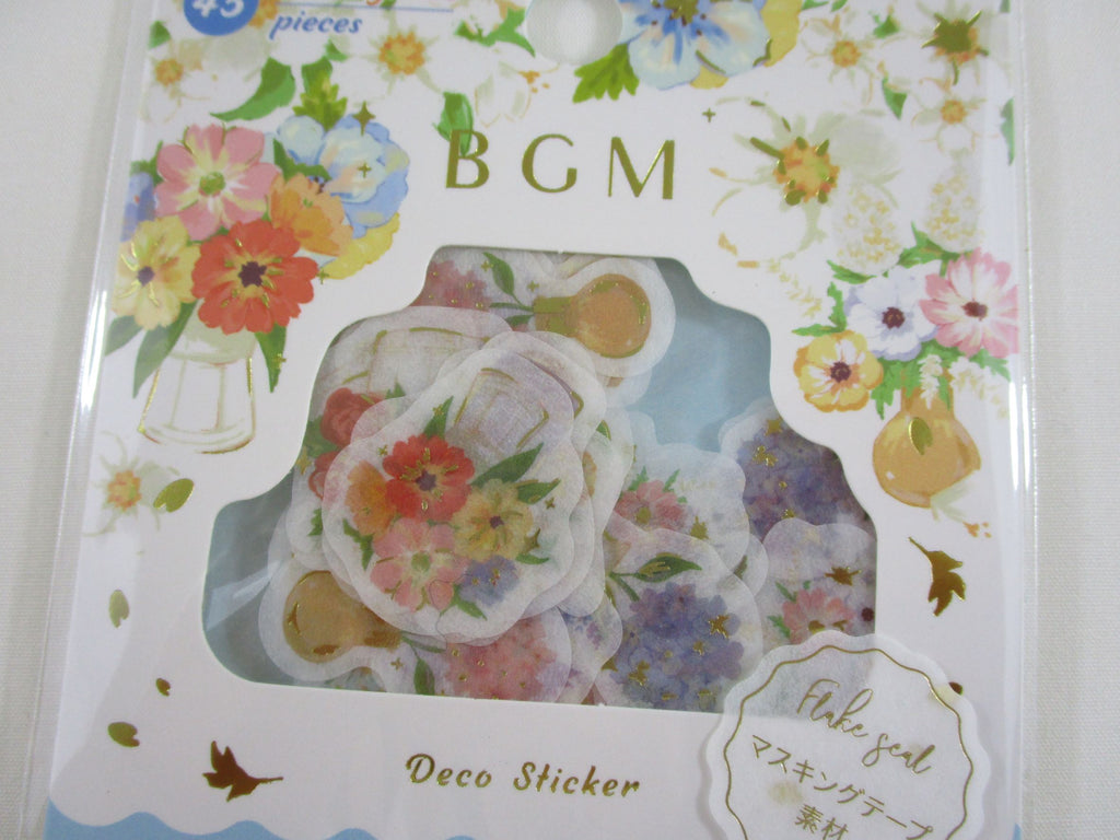 Flowers series - flowers in vases theme flake stickers sack from BGM Japan.