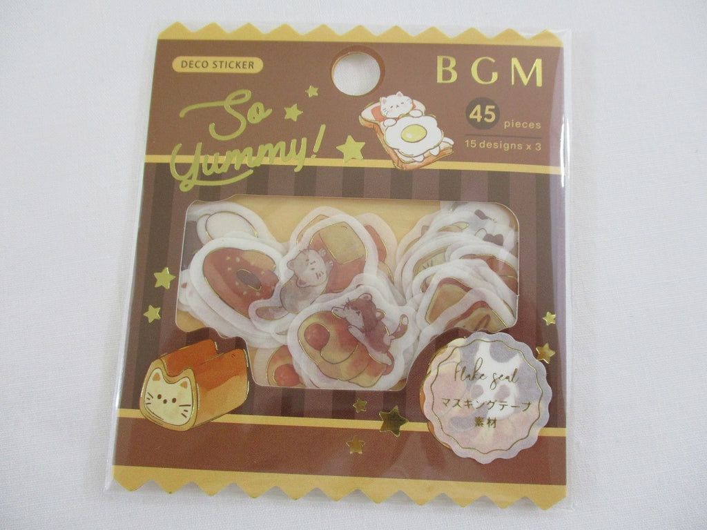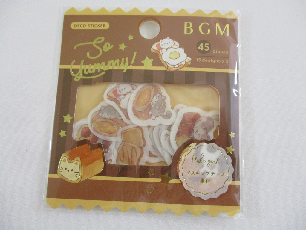 Cute Kawaii BGM So Yummy Series Flake Stickers Sack - Breakfast Cat - for Journal Agenda Planner Scrapbooking Craft
