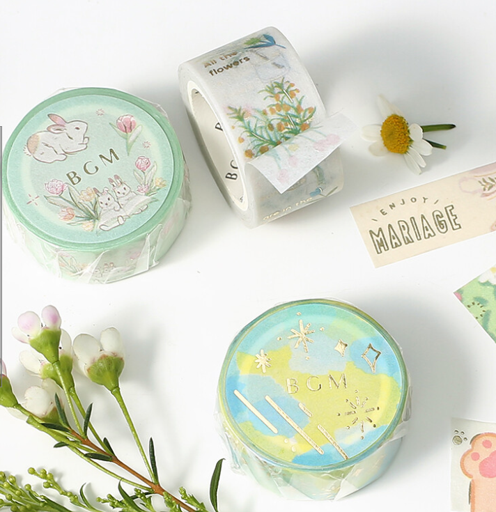 Cute Kawaii BGM Washi / Masking Deco Tape - Bunny Tulip Flower Rabbit Garden Field Pink - for Scrapbooking Journal Planner Craft