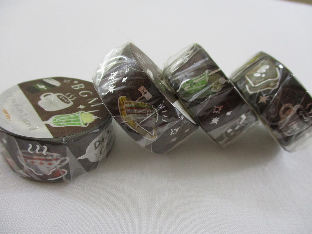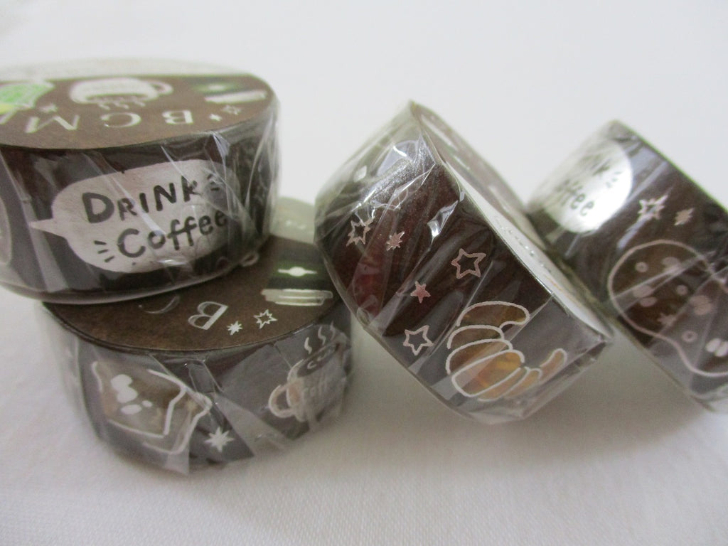 Cute Kawaii BGM Washi / Masking Deco Tape - Crayon Land series - Cafe Coffee - for Scrapbooking Journal Planner Craft