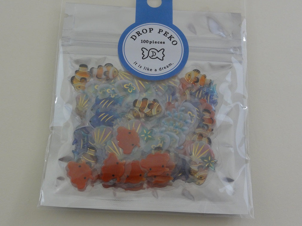 Fish / ocean theme flake stickers sack from Crux Japan.