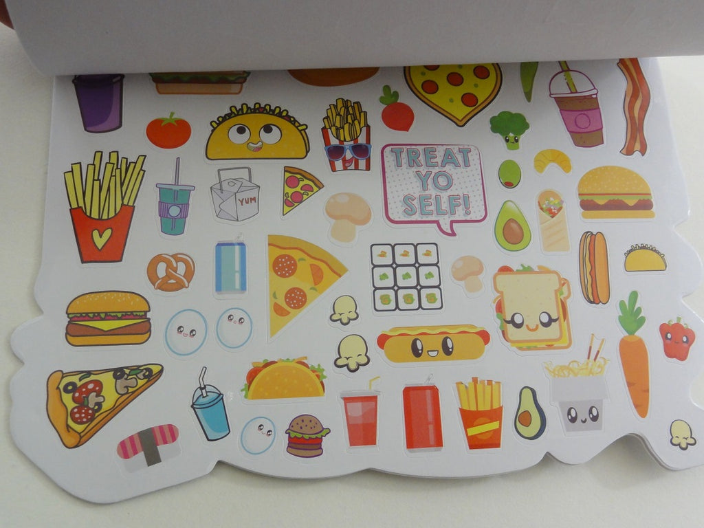 Size of the book is about 4.5 x 6.25 inch. The stickers are made of paper.