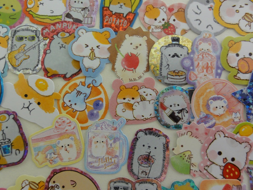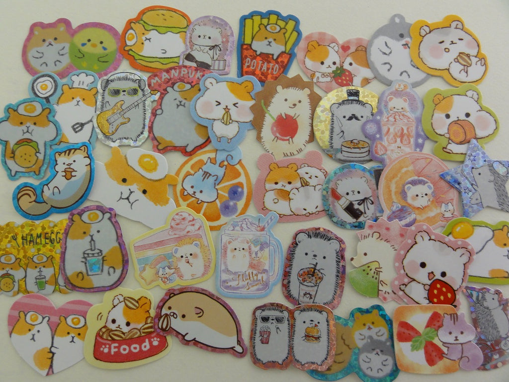 38 hamster, hedgehog and squirrel flake stickers (38 different designs)
