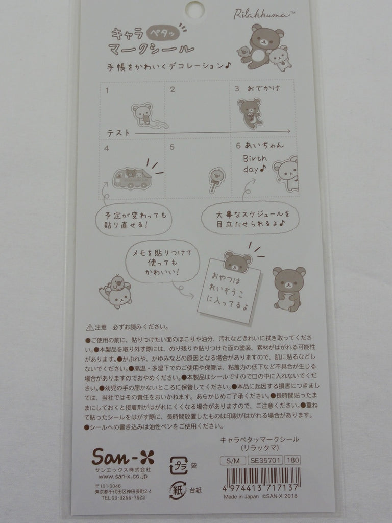 Cute Kawaii San-X Rilakkuma Bear Sticker Sheet 2018 - B - for Planner Journal Scrapbook Craft